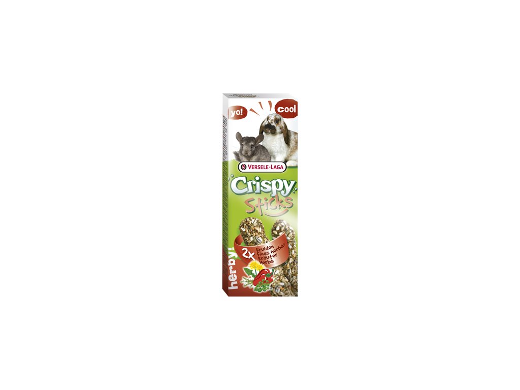 Sticks Rabbits & Chinchillas Herbs Versele-Laga sú chutné tyčinky pre králiky a činčily obohatené o aromatické bylinky. Predstavujú ideálnu doplnkovú pochúťku, ktorá podporuje prirodzené obrusovanie zubov a zároveň poskytuje zvieratám zábavu.