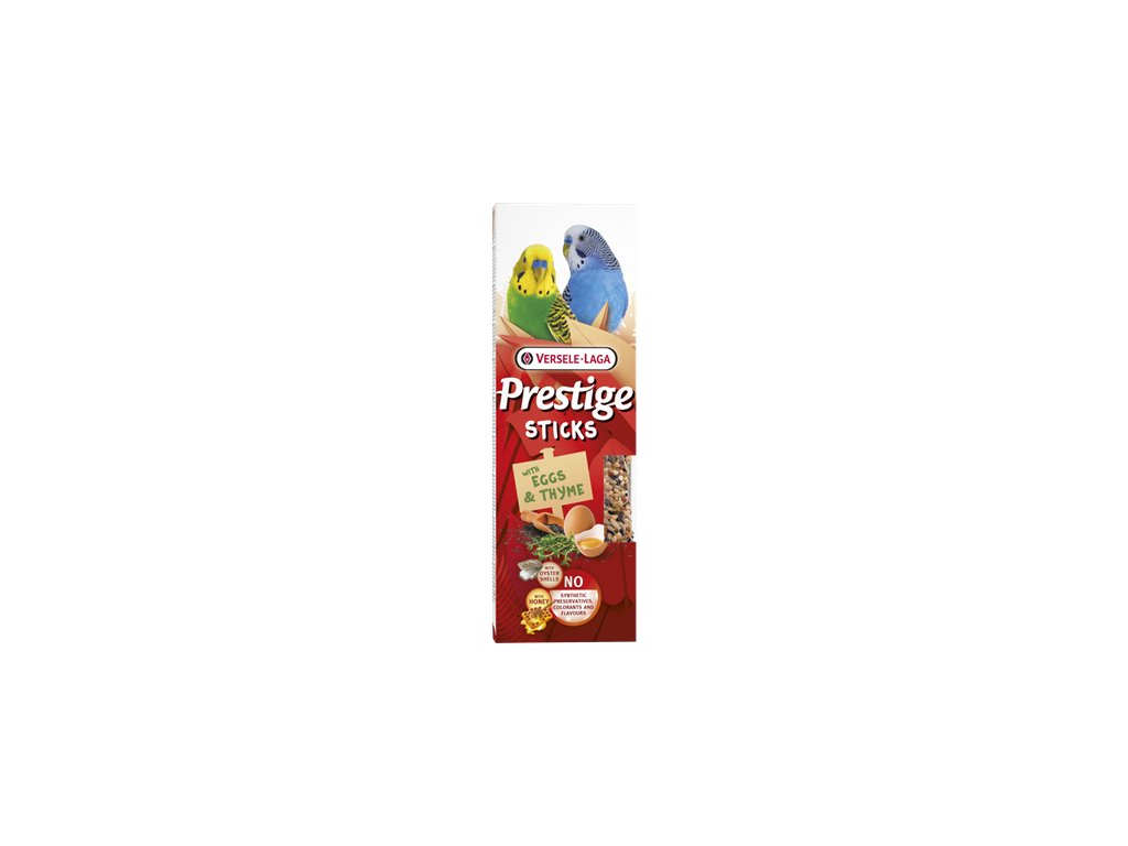 Versele Laga Prestige Sticks Small Parakeets with Eggs & Thyme Tyto pečené tyčinky jsou navrženy jako lahůdkový doplněk pro malé papoušky a andulky.