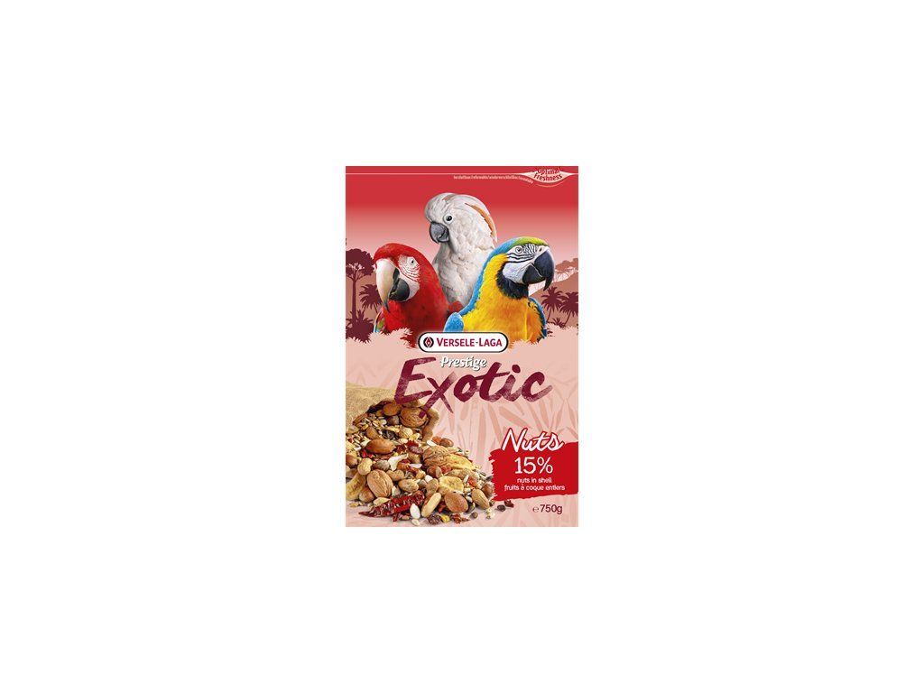 Versele-Laga Prestige Premium Parrots Exotic Nuts Mix je chutný snack pro papoušky, obsahující směs ořechů, ovoce a semen. Tento produkt, vyvinutý ve spolupráci s Loro Parque, je ideální pro zpestření stravy a podporu zdraví vašich papoušků.